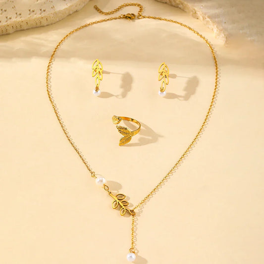 Złoto 18K pozłacany liść zestaw biżuterii z perła