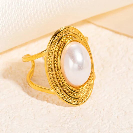 Złoto 18K pozłacana pierścionek z perłą w antyczny styl