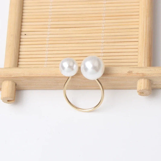Złoto 18K pozłacana podwójna perła regulowana pierścionek