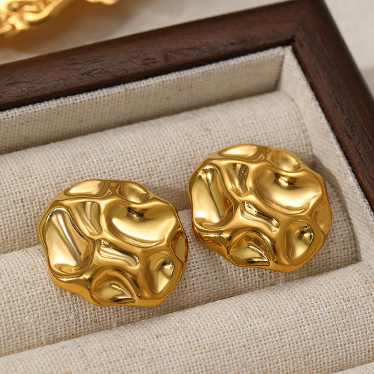 Złoto 18K pozłacana okrągła vintage-look kolczyki
