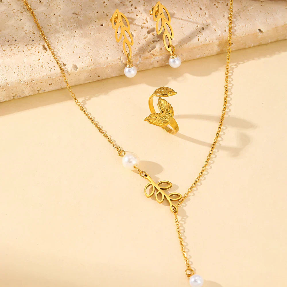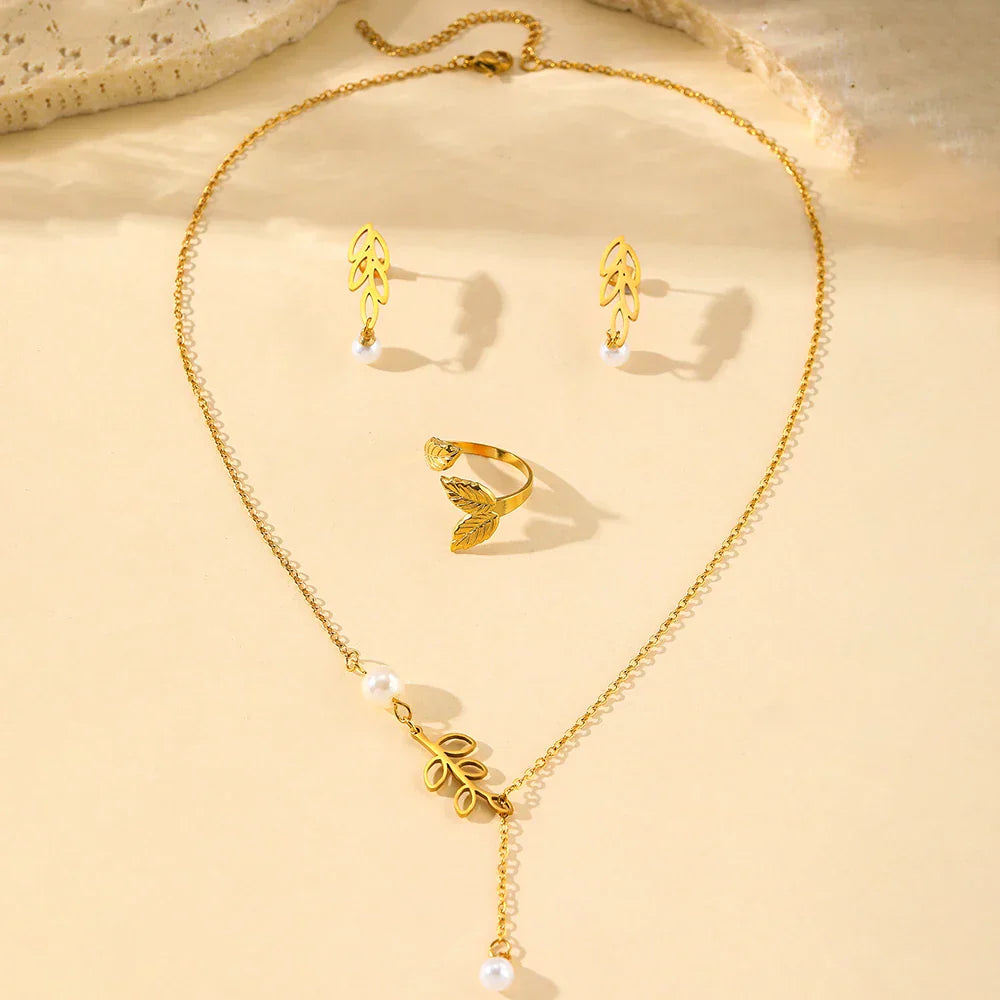 Złoto 18K pozłacany liść zestaw biżuterii z perła